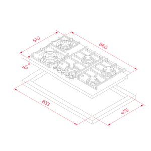 - Características del Producto: CristalGas Exact Flame con bisel frontal Mandos frontales de diseño ergonómico Superficie de vidrio cerámico 9 niveles de potencia con un control exacto de la llama 4 quemadores de gas