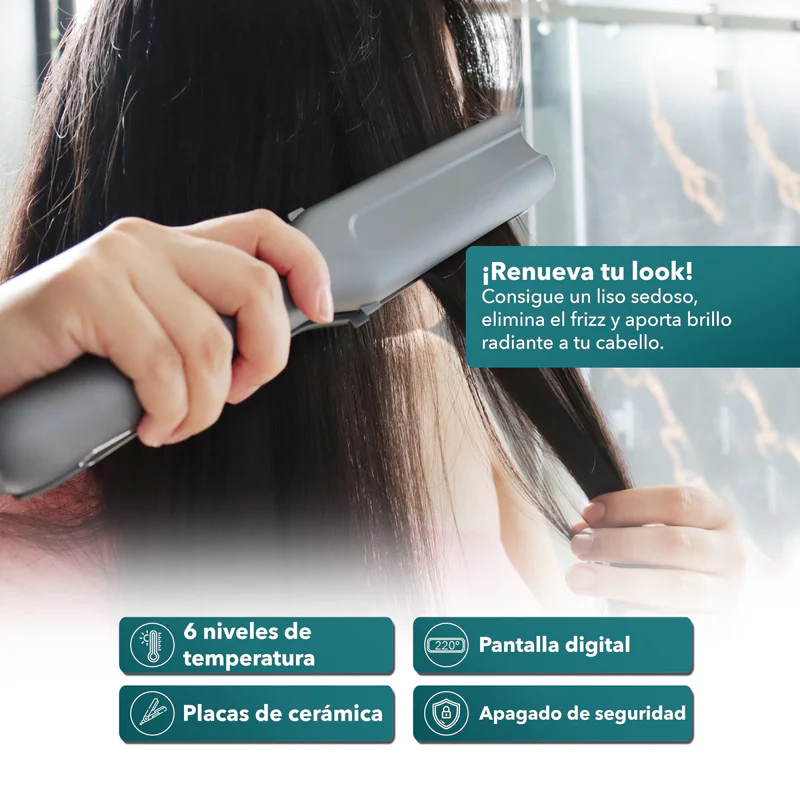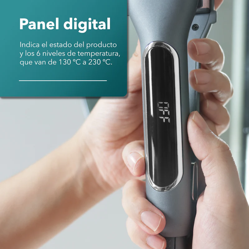 - TEMPERATURA:Podrás regular la intensidad del calor en las placas entre sus 6 modos para tener un control total del planchado.
