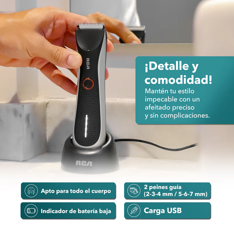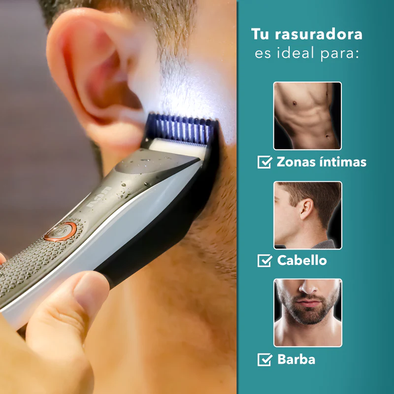 - Luz led guía: Asegura un uso preciso al brindarte una referencia visual y directa para un recorte del vello de manera uniforme.