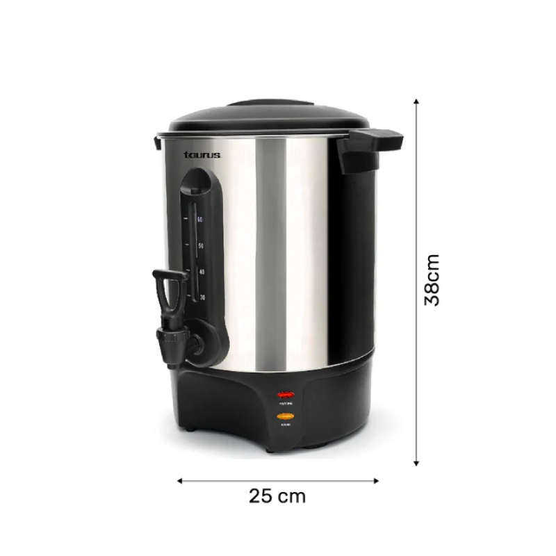 Prepara café para todos con la eficiente y práctica cafetera Coffee Station 60 de Taurus. Con capacidad para hasta 60 tazas, es perfecta para restaurantes, oficinas, eventos y más. Su diseño rápido y ecológico incluye un filtro permanente lavable y reutilizable, ahorrando dinero y reduciendo residuos. Fácil de usar con indicadores luminosos y duradera con su cuerpo de acero inoxidable resistente a las manchas, es la elección ideal para garantizar café caliente y delicioso en cualquier ocasión.