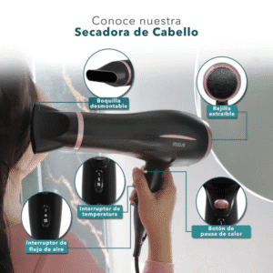 • Características del Producto: Voltaje: 127V. Su potencia es de 1875W. Cuenta con un cable de 1.83m de largo. Funciona con 2 niveles de temperatura. Con 2 velocidades. Es iónico. Contiene secadora. Voluminiza tu cabello.